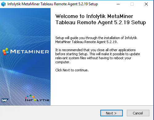 <METAMINER INSTALLATION DIRECTORY>\server\mmtabagent-installer-5.2.x.exe - Identify a Windows Server computer where Tableau Server is installed.